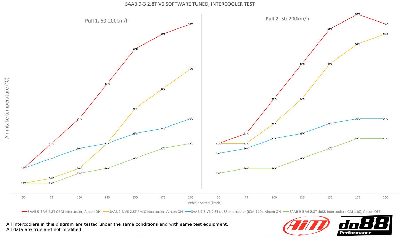 A common misunderstanding is that an intercooler installed in this position cannot provide good performance and a front mounted intercooler / FMIC would be much better. But actually the do88 performance intercooler are far better than most FMIC installations where only a core with small front surface are possible to install and often also installed partially behind the bumper beam which will reduce cooling capacity even further and often cooling below the OEM intercooler are achieved.