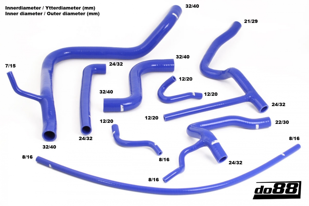 These hoses are entirely manufactured in high quality silicone for best finish and durability. With three to five layers of armory, depending of the inner diameter, the hoses withstand high pressure rates and high temperatures for a long time. The original hoses are manufactured in rubber that not seldom cracks from age. This is the durable solution for you that in addition improves the looks!