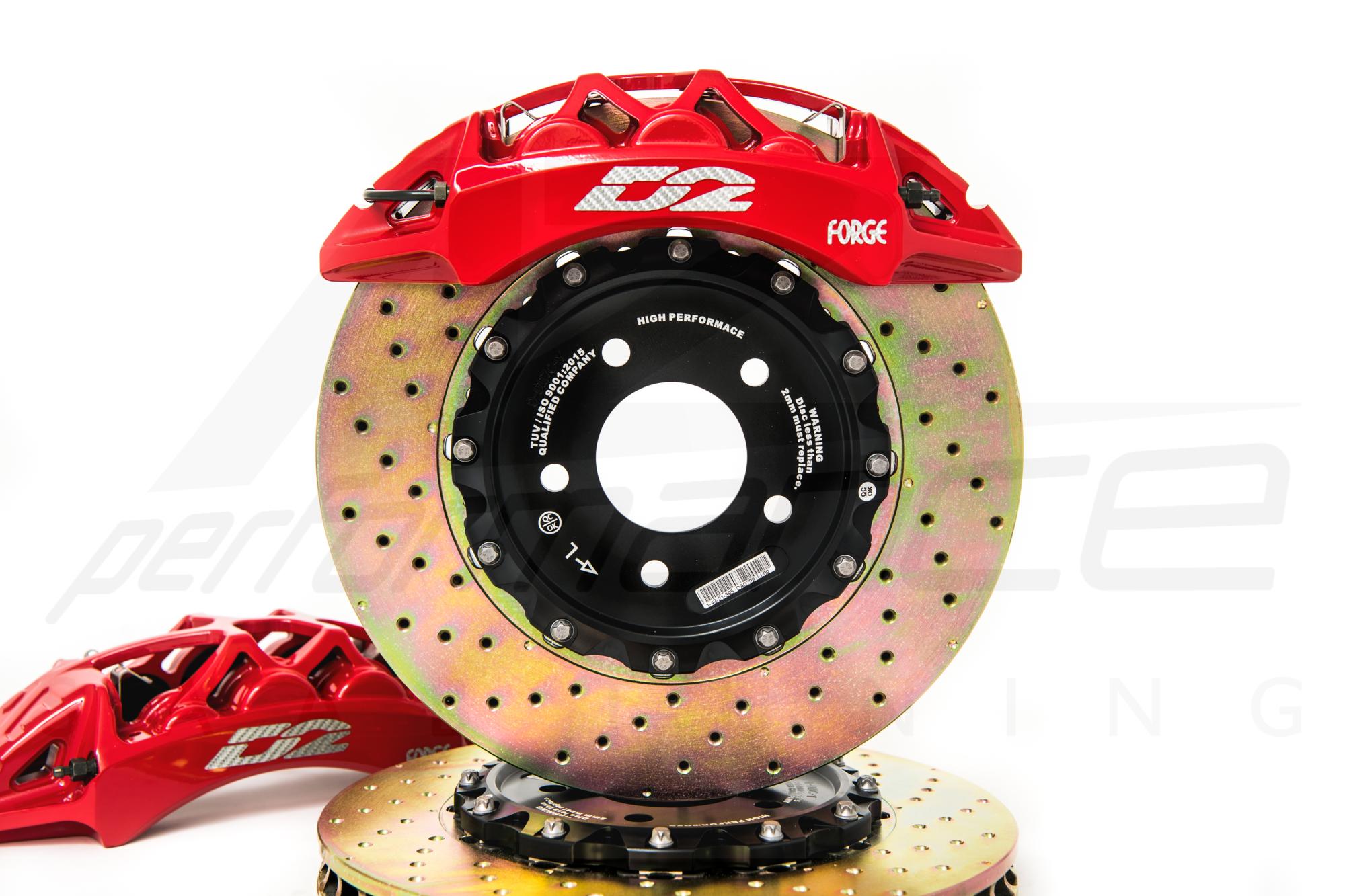 D2 brake kits provide you with serious braking power when you need it most. D2 calipers are precision machined from aircraft quality billet aluminium and feature heavy duty aliminium pistons mated to temperature resistant seals. These high performance calipers are able to utilize a lightweight construction while providing dramatically increased braking performance. The rotors included in the D2 brake kits feature a two-piece design and slotted surfaces which help minimise fade and dissipate heat under the most extreme brake conditions.